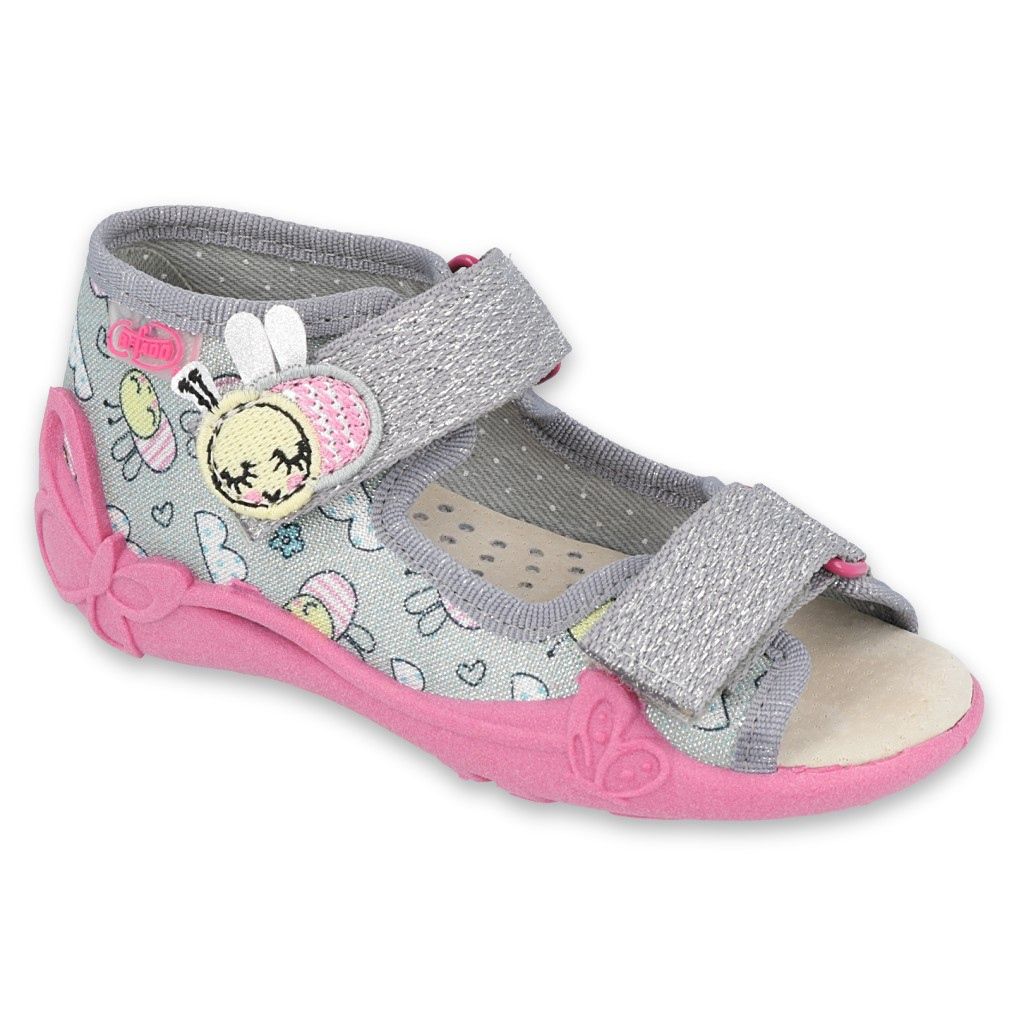 Befado gula barnskor 342P027 i rosa och grått är det perfekta valet för varje liten tjej för varmare dagar. Dessa bekväma sandaler ger inte bara ett estetiskt utseende, utan framför allt komfort och hygien. Ovandel av luftiga bomullstyger låter foten andas, vilket är oerhört viktigt under sommarnöjet.