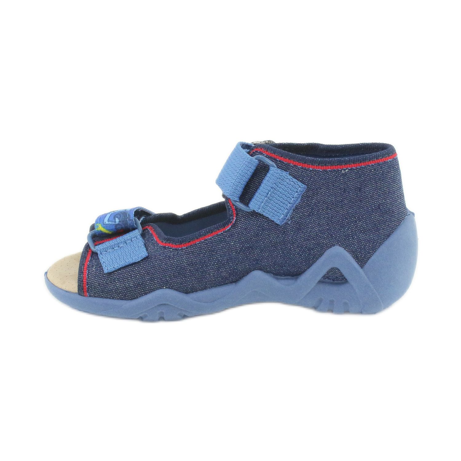 Befado gula barnskor 350P005 i marinblått är ett perfekt val för varma, soliga dagar. Dessa bekväma sandaler ger barn rörelsefrihet och komfort att bära. Ovandel av luftiga bomullstyger garanterar en hygienisk och behaglig atmosfär för fötterna, vilket är oerhört viktigt för aktiva barn.