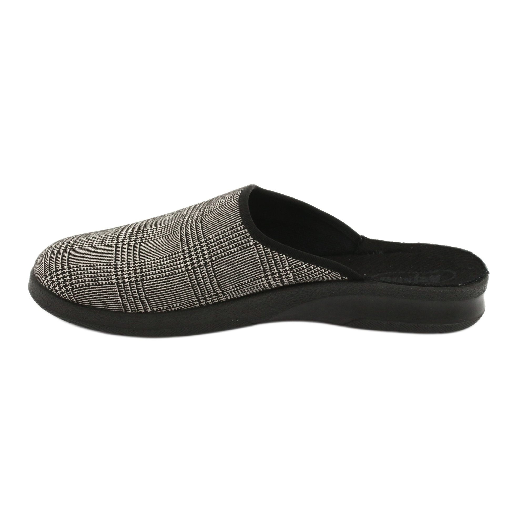 Den slitstarka svarta sulan ser inte bara bra ut visuellt, utan ger även tillräckligt grepp på olika underlag, vilket ökar säkerheten vid gång. Det rutiga mönstret på toppen ger en klassisk charm, vilket gör att dessa tofflor lätt passar in i en mängd olika hemstilar.