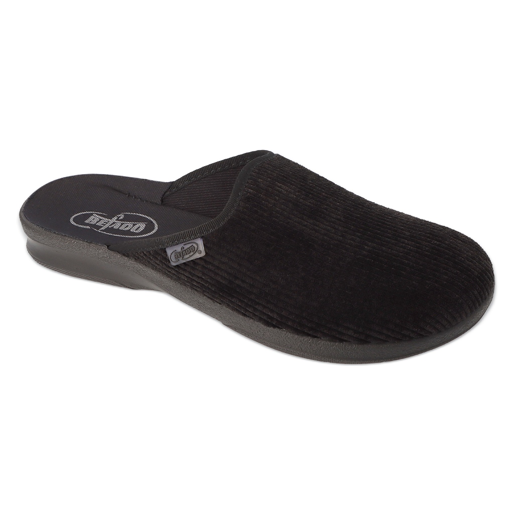 Bekväma, dagliga tofflor för män som bryr sig om fötternas komfort och friskhet. Befado PU 548M030 -modellen är tillverkad av mjuka, andningsbara tyger som begränsar svettning och ger en trevlig känsla av komfort under dagen. Den infogade designen gör det lättare att ta på sig, och den enkla, svarta färgen gör att tofflorna passar alla hemdräkt.