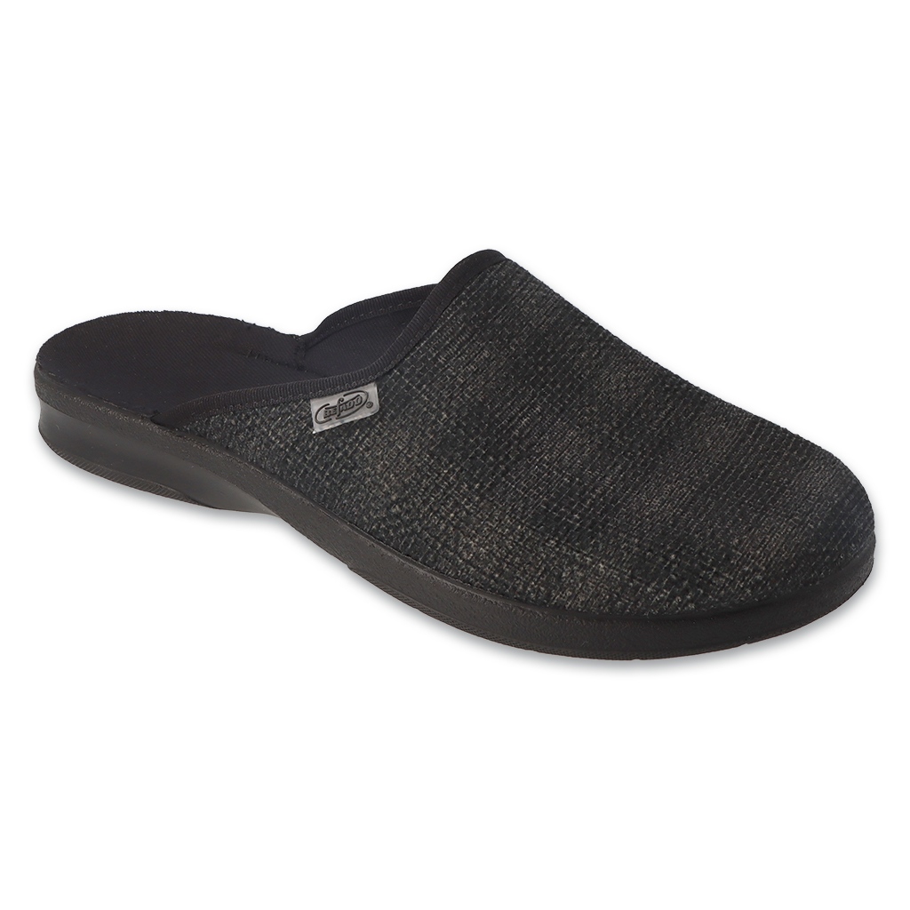 Lär känna Befado herrskor pu 548M038 i en elegant svart version med grå accenter, som kommer att fungera bra i alla hem. Befado tofflor är det perfekta valet för män som värdesätter inte bara stil, utan framför allt komfort att bära. Tack vare konstruktionen av mjuka, naturliga tyger andas fötterna, vilket översätts till en känsla av friskhet hela dagen.