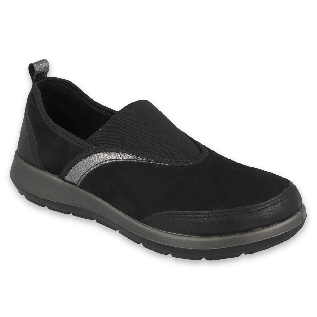 Klassiska, bekväma och enkla att ta på sig - det här är kvinnors befado 156D006 kvinnors skor. Ett enkelt, minimalistiskt snitt i universal svart med grå accenter gör att de fungerar både som hemlagade tofflor och lika bekväma skor för snabba utgångar. Brist på blixtlås och snören möjliggör omedelbar infogning av foten, och den runda näsan säkerställer ett naturligt arrangemang av fingrarna.