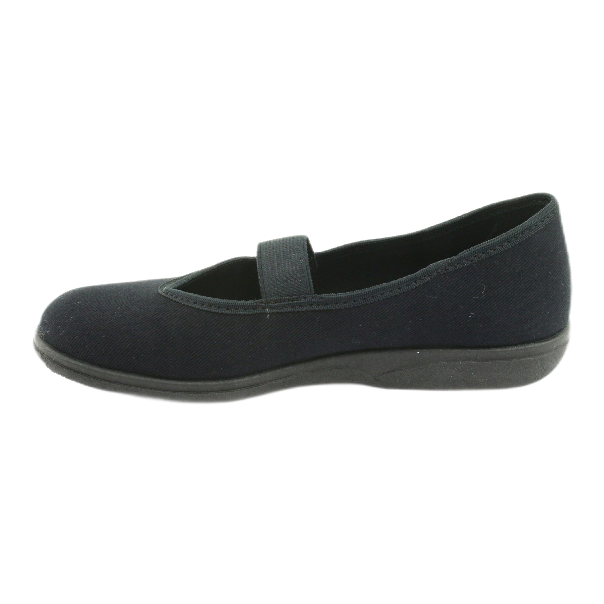 Befado skor har certifikatet "Healthy Foot", vilket gör dem till ett idealiskt val för dem som bryr sig om hälsa och komfort. Deras minimalistiska, svarta design med en rund tå gör att de matchar många stilar, och avsaknaden av ytterligare mönster gör att de enkelt kan matchas till resten av din garderob.