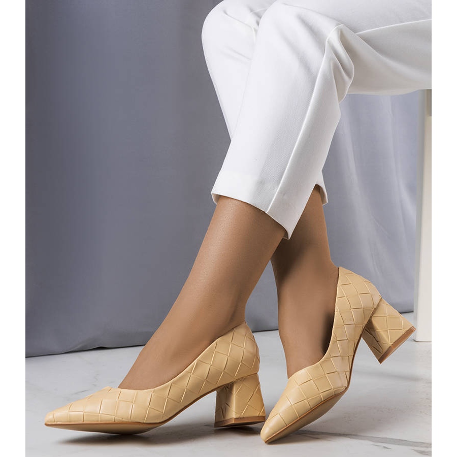 Med en 3,5 cm blockhäl är dessa pumps både eleganta och stabila, vilket gör dem till ett sant nöje att trampa på. Den beige färgen passar bra med många stilar, från avslappnad till mer formell, vilket gör dem till ett mångsidigt tillskott till alla garderober.