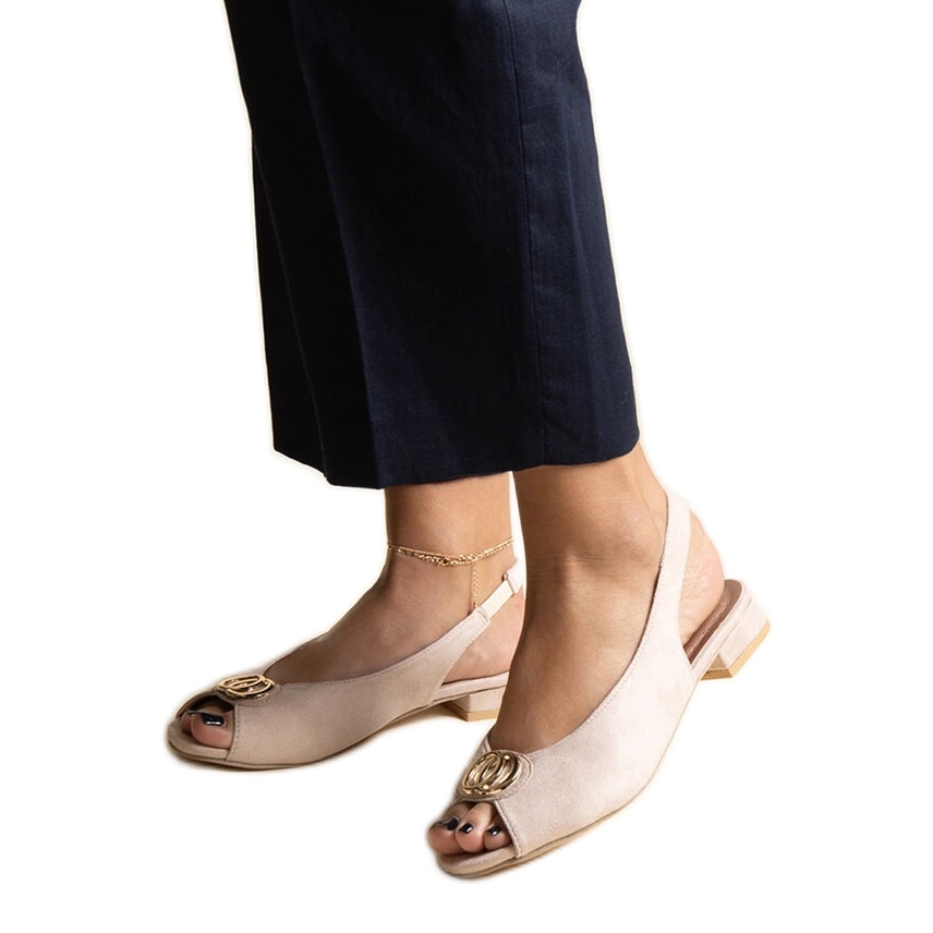 Detaljer: Beiga slip-on sandaler med låga klackar Teyla beige