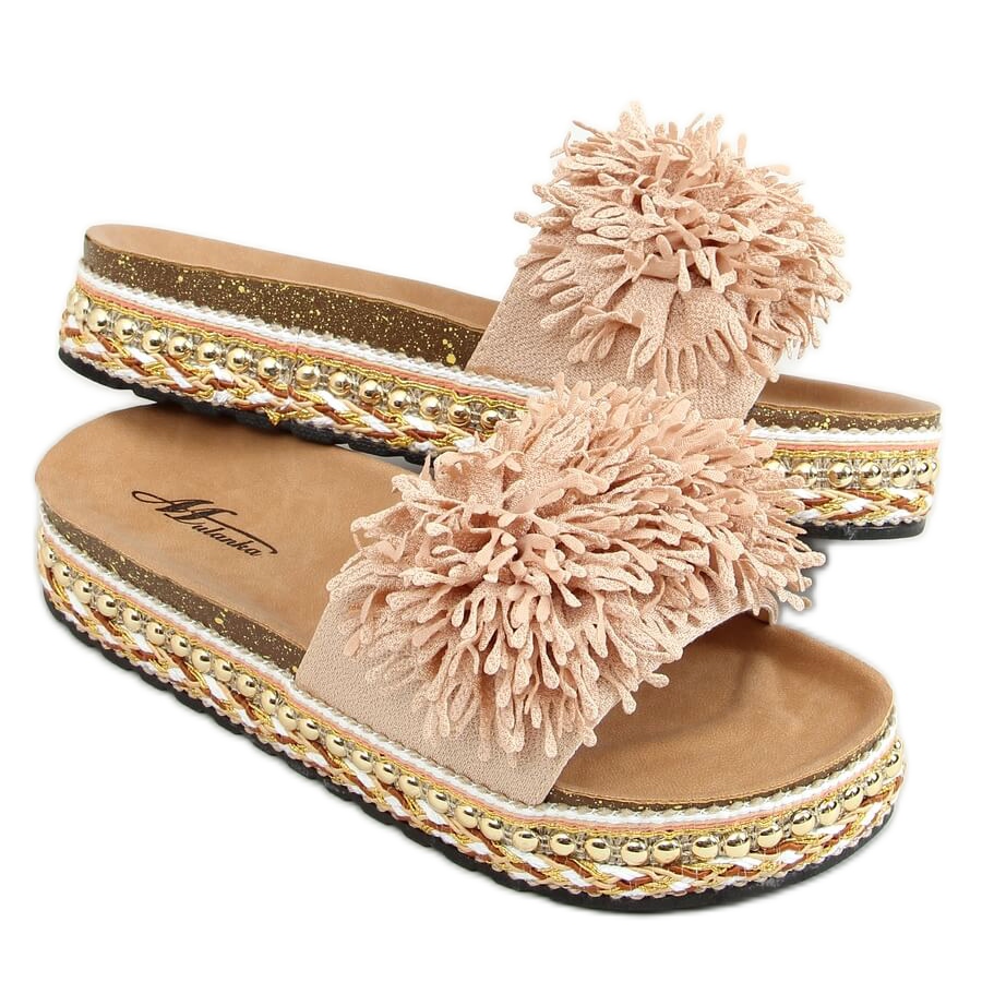Detaljer: Beige 2260 Beige tofflor på den dekorerade sulan