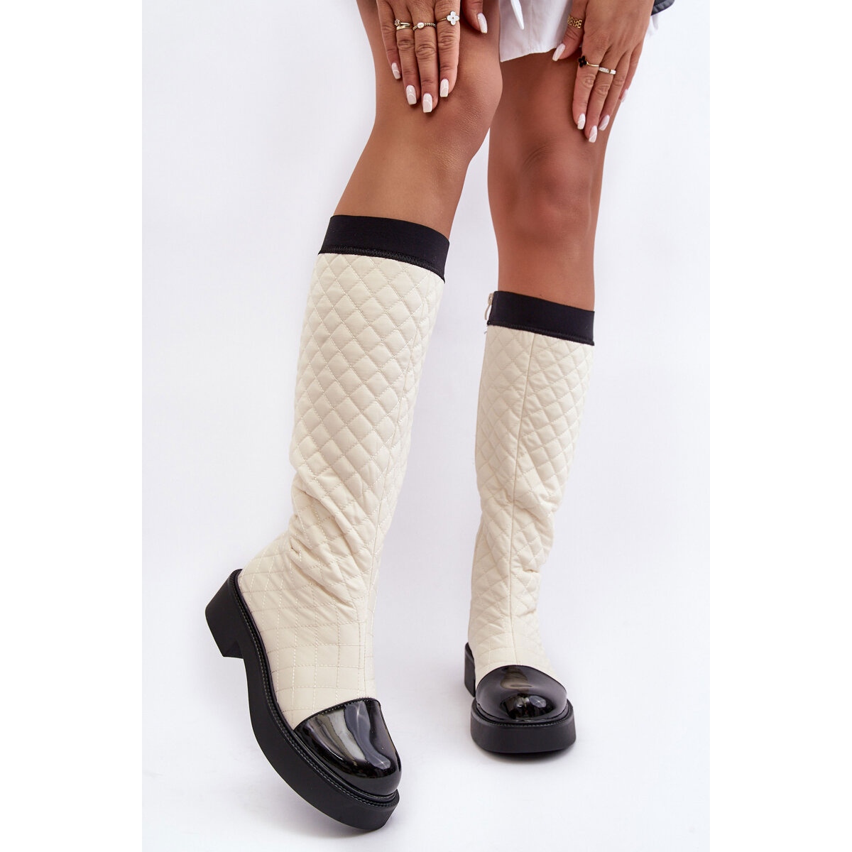 PS1 quiltade stövlar framför knäbeige/svart - elegans och komfort för svalare dagar.