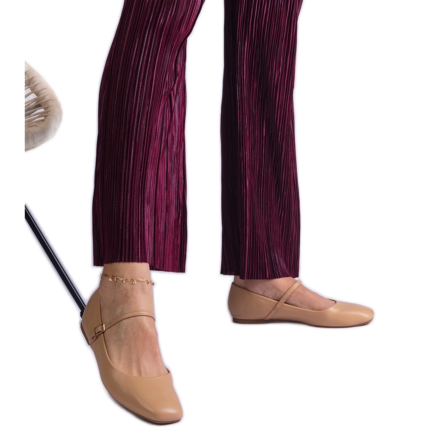 Detaljer: Beige balettlägenheter med eko-läderspännen