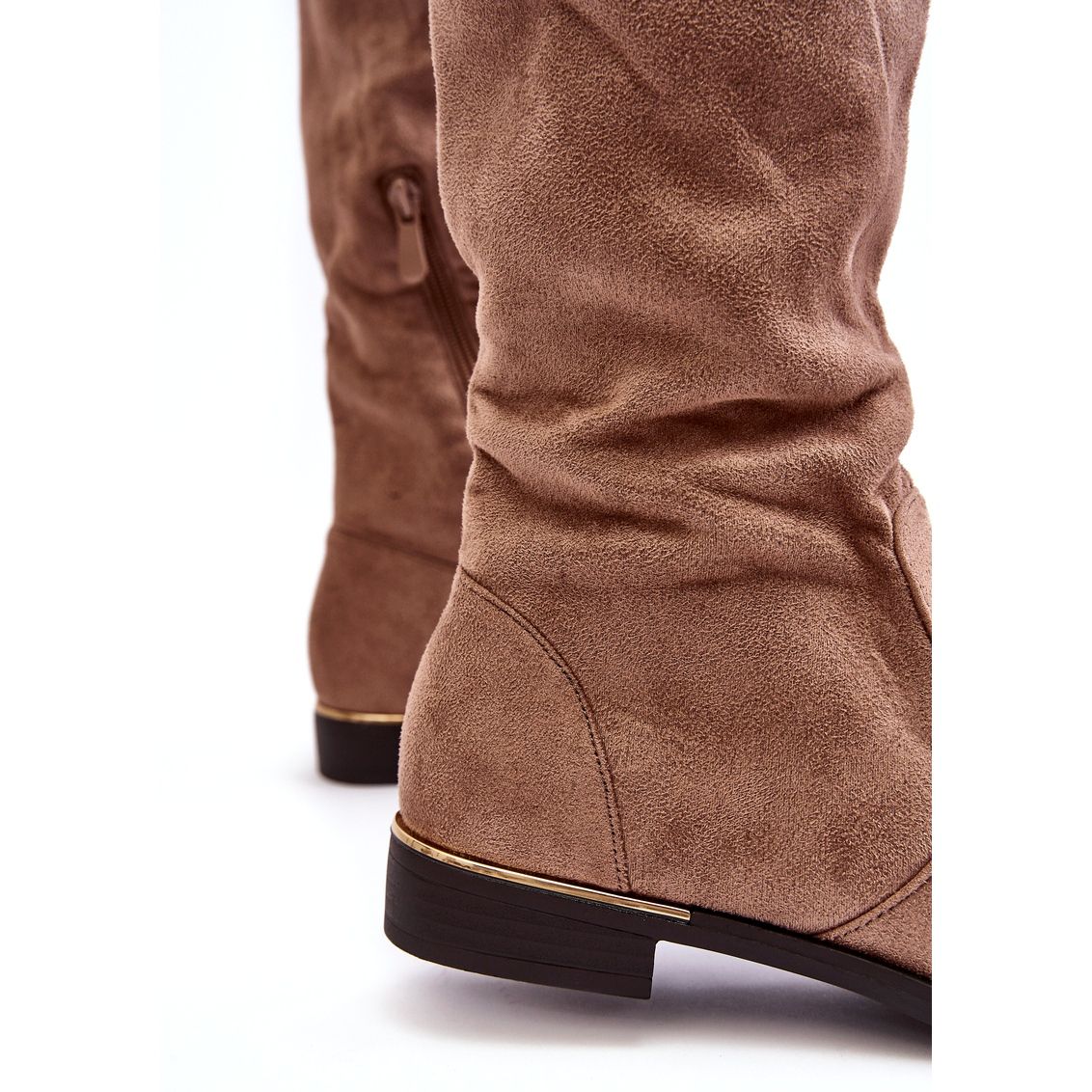 Detaljer: Super Me Beige Bikka Platta Knä-knästövlar för kvinnor