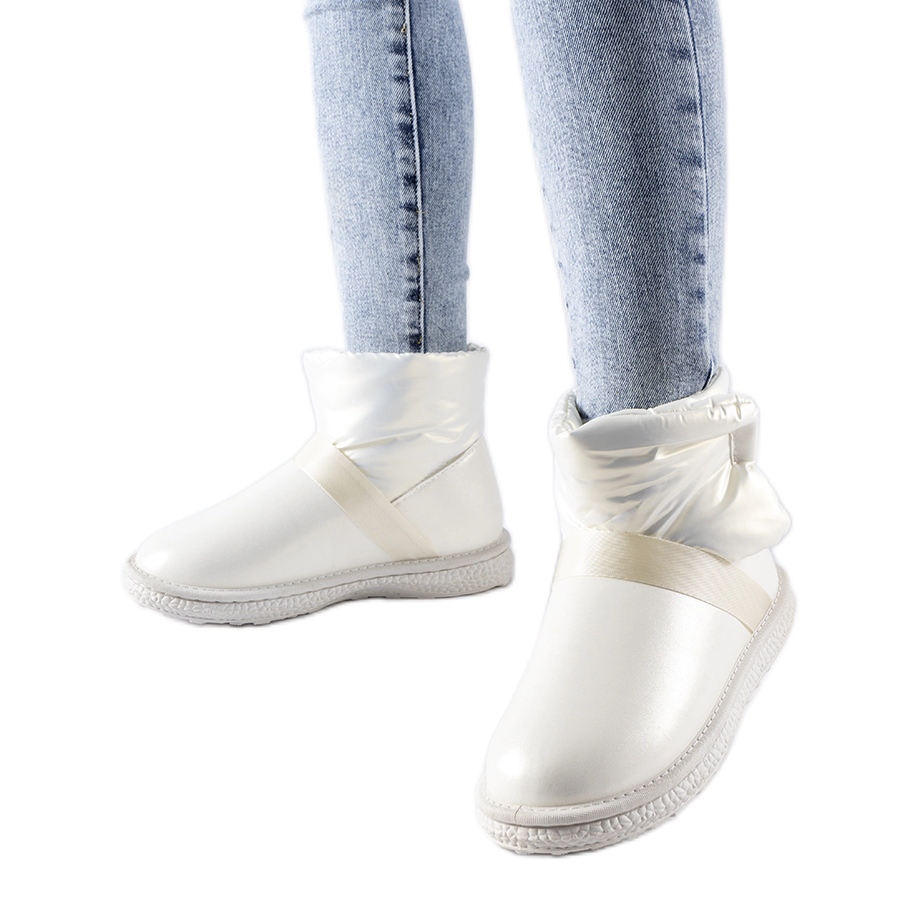Snygga, korta snöstövlar i en universell beige färg med en delikat glans, som kommer att vara perfekt för både vardagliga och eleganta vinterstyliseringar. Tack vare plattformen (3 cm) och gummisula får du stabilitet och ytterligare isolering från kalla ytor. Uppvärmning och yttre material tillverkat av ekologiskt läder säkerställer termisk komfort, och det praktiska kardborrfästet gör det lättare att ta på sig och passa skorna på foten.