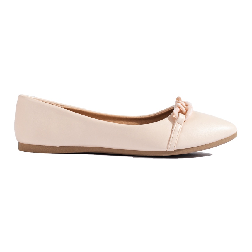 Beige spetsiga balettkläder för kvinnor med kedja från W. Potocki är ett perfekt val för kvinnor som värdesätter en elegant och avslappnad stil. Tillverkade av högkvalitativt läderimitation, både på utsidan och insidan, erbjuder de komfort att använda hela dagen.