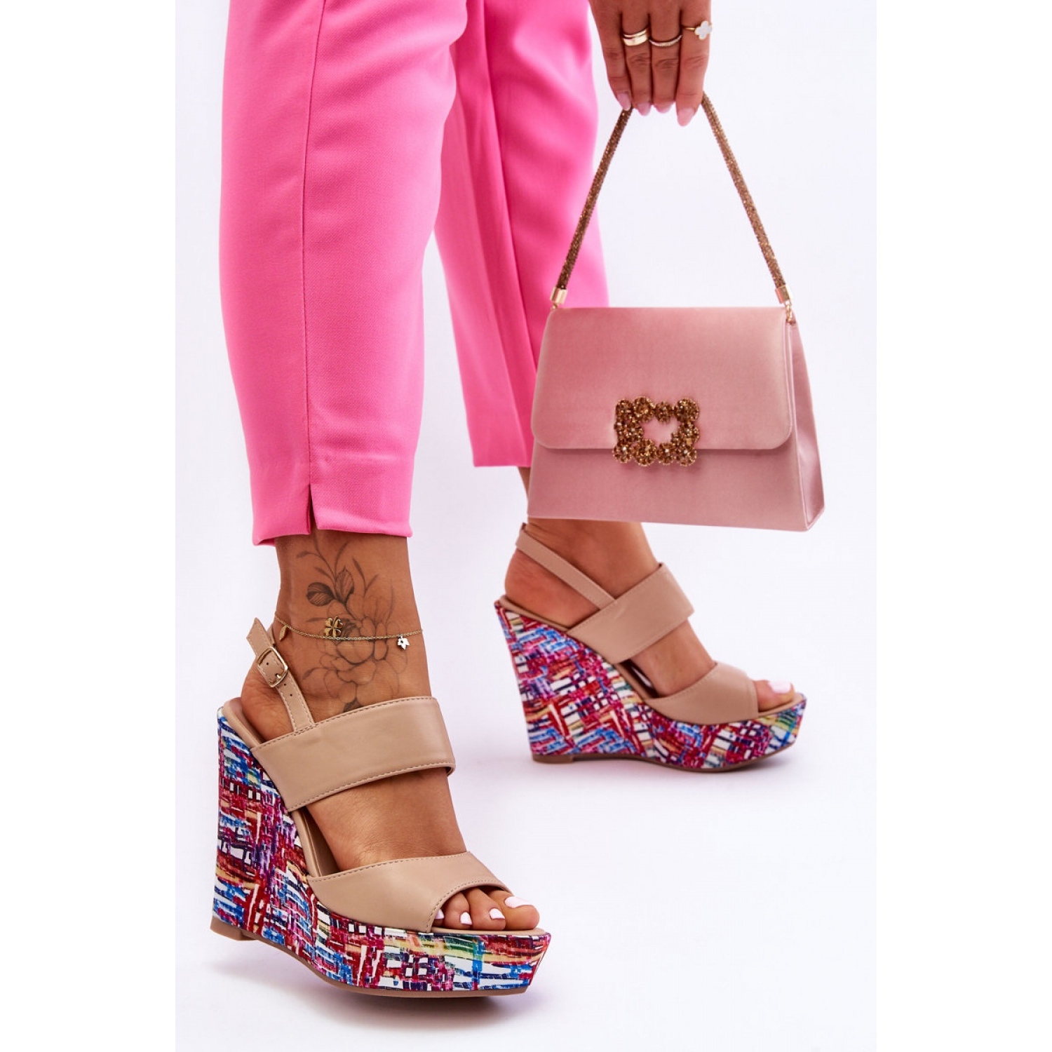 Upptäck elegans och komfort i ett tack vare kvinnors beige kilsandaler. Dessa snygga sandaler är ett idealiskt tillskott till varje sommarstylisering, som kombinerar fashionabla design och funktionalitet.