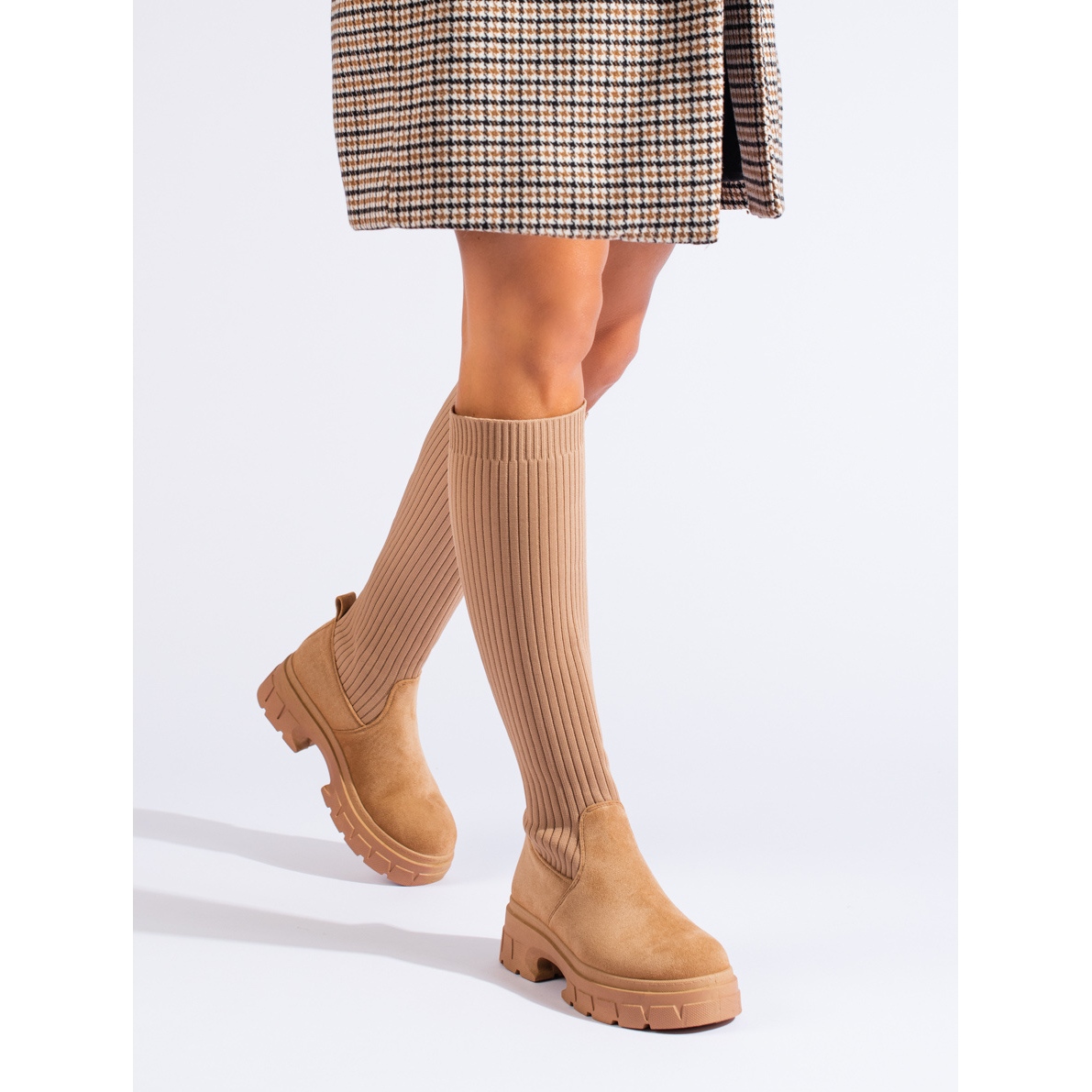 Detaljer: Beige damstövlar med en flexibel ovandel