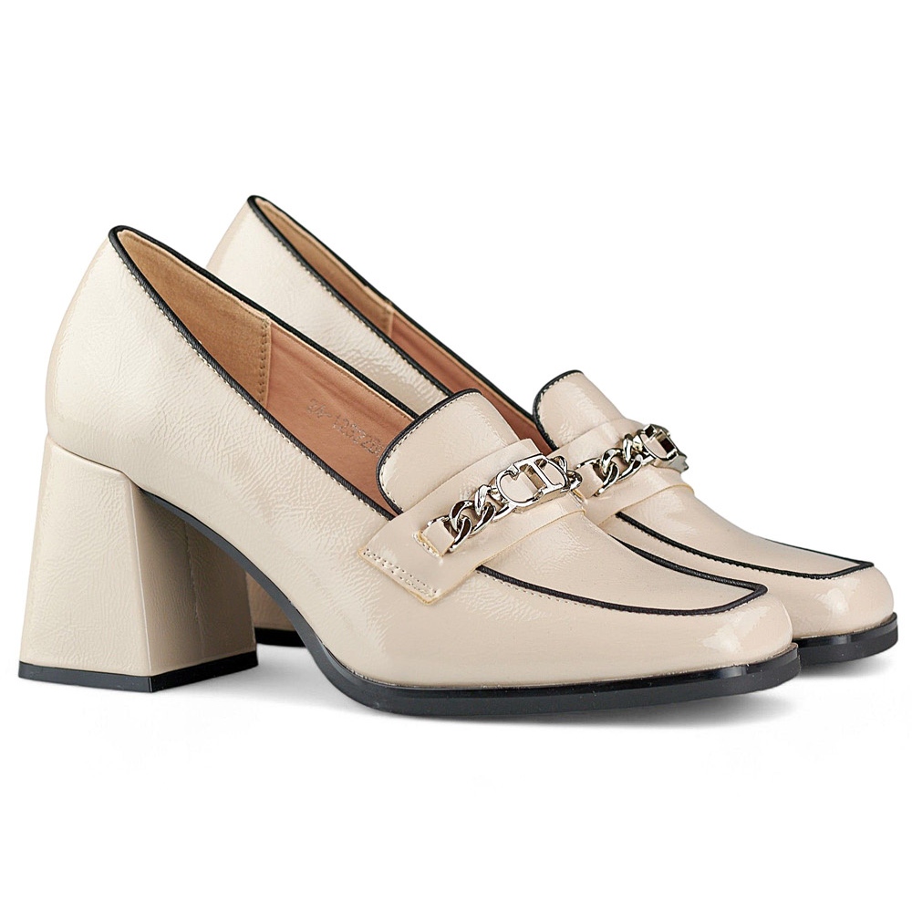 Vi presenterar beige eleganta höghöjda -varnade skor som kommer att glädja varje kvinna som letar efter snygga och bekväma skor för varje tillfälle. Dessa loafers från ett annat märke kännetecknas av fashionabla design och noggrann prestanda av ekologiskt lackerat läder, vilket gör dem både estetiska och miljövänliga.