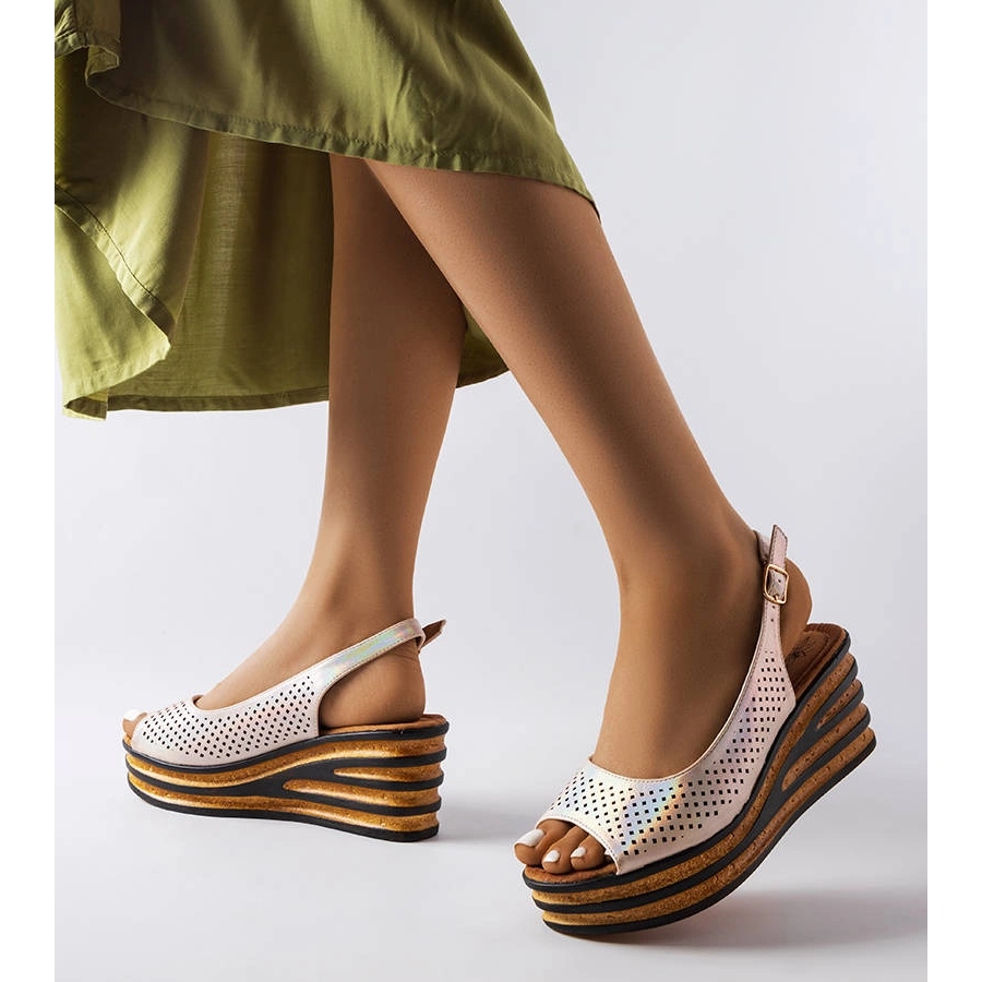Beige Espadrilles on the Griner Wedge - Styliga och bekväma sandaler som kommer att vara ett perfekt komplement till sommarstyliseringar. Modellen glänsande sandaler på GD-FL1041A-kilen kombinerar en klassisk form med en subtil, öppningsdekoration som ger lätthet och friskhet.