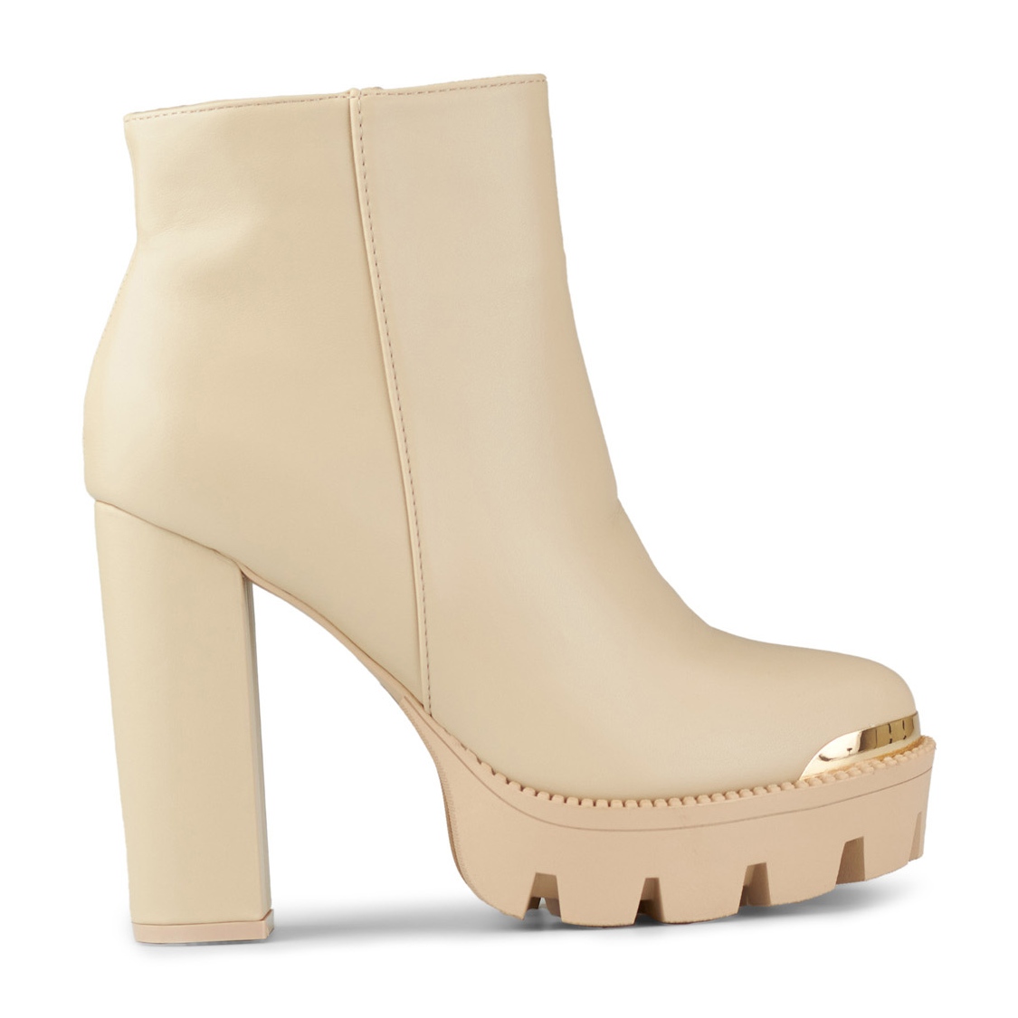 Detaljer: Beige höga ankelstövlar för kvinnor med tjock klack