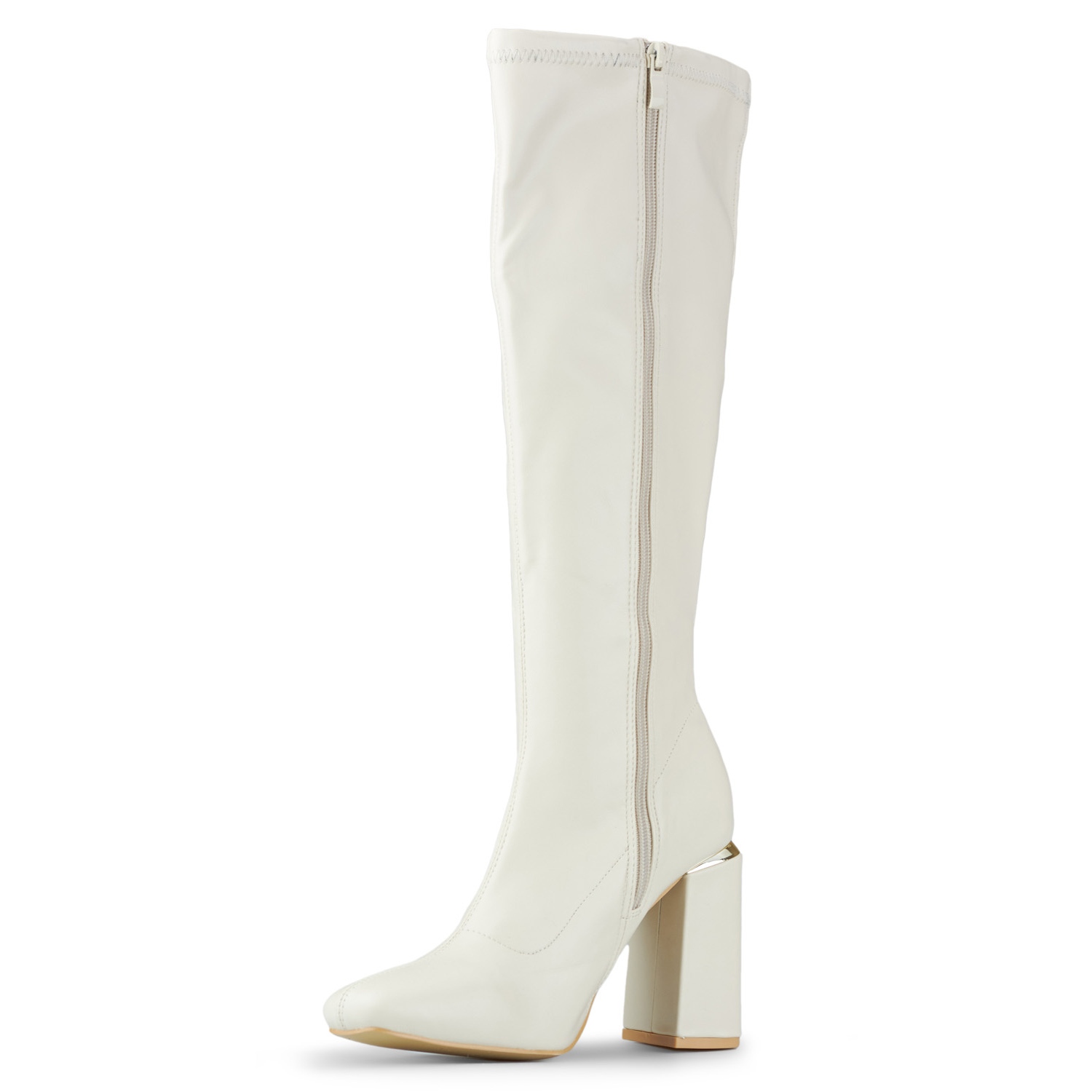 Information: Beige högklackade stövlar i ekoläder