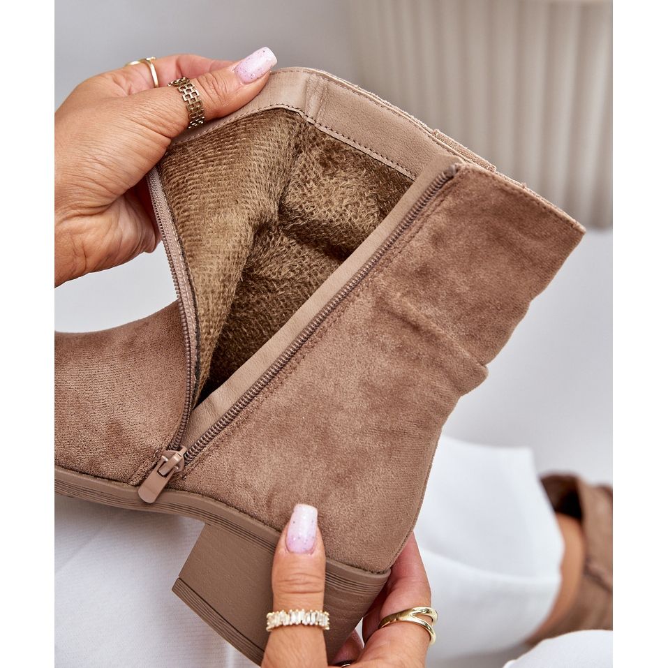 Detaljer: Beige, isolerade ankelstövlar för kvinnor med en rynkig övre lågklack Zinanya