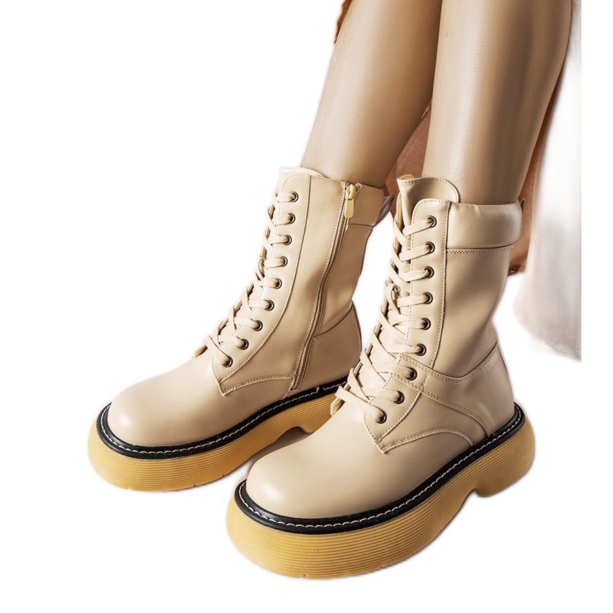 Detaljer: Beige isolerade arbetarstövlar på Davi-plattformen
