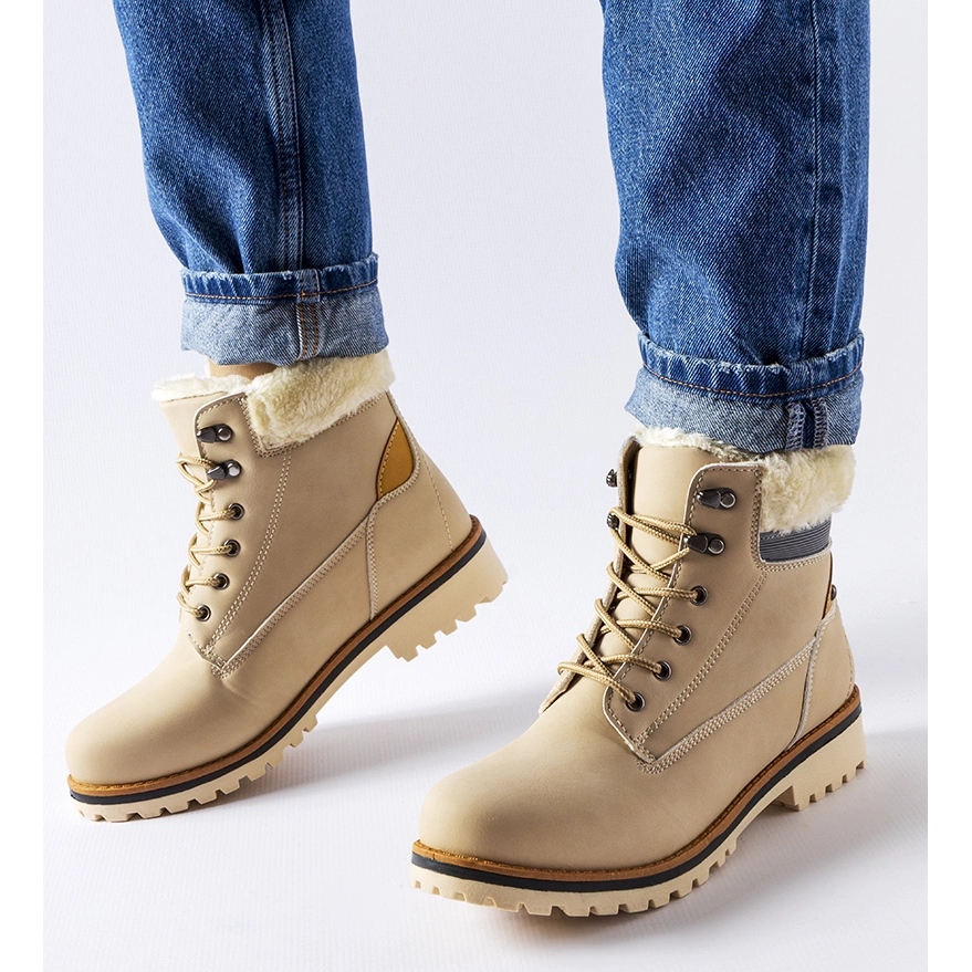 Beige Montalbino -fällor är praktiska och eleganta skor för vintern - komfort, värme och universell utseende i en.