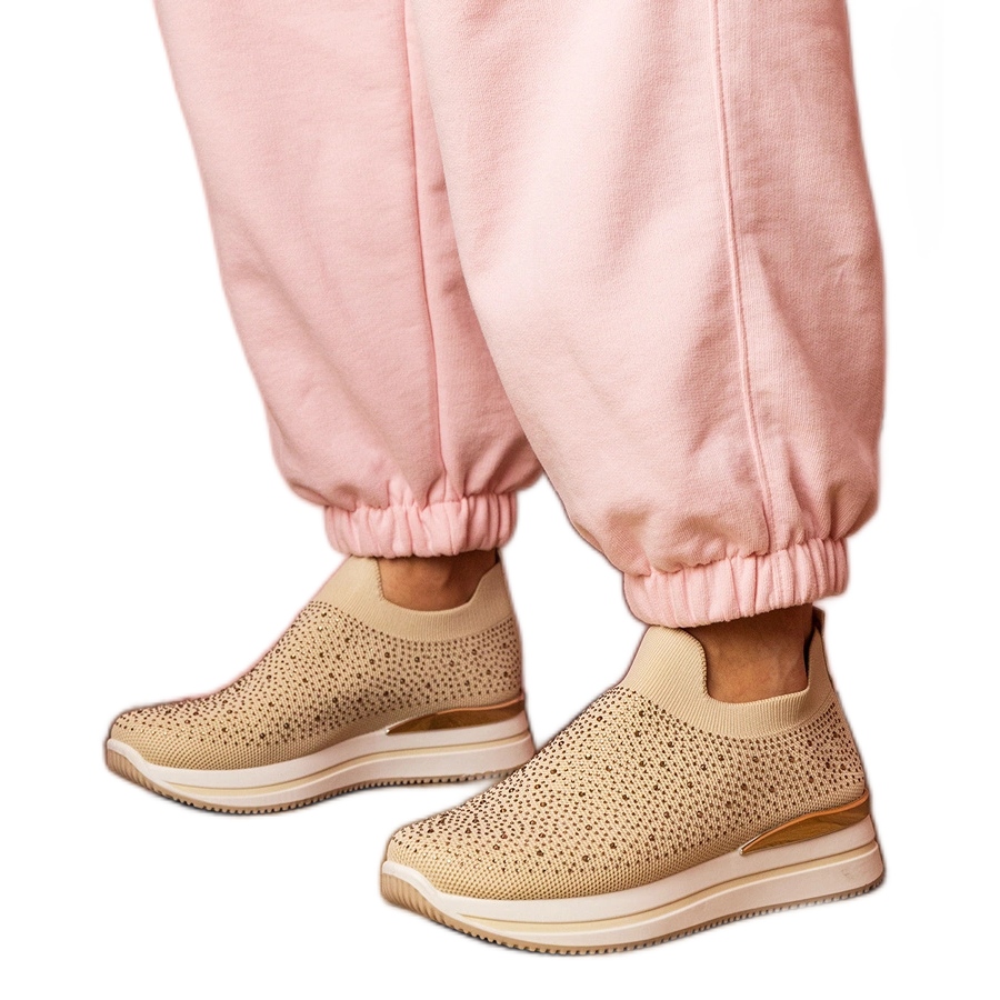 Detaljer: Beige kvinnors sneakers på plattformen med zirkoner