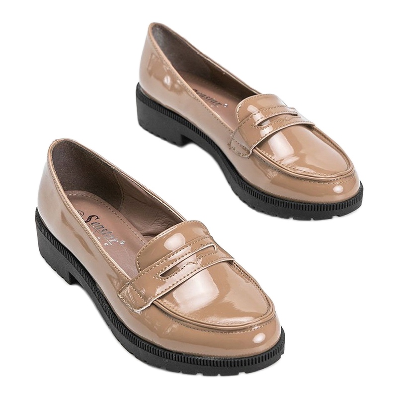 Beige loafers i lack från Sis är det perfekta valet för kvinnor som vill kombinera elegans med komfort. Dessa snygga skor med tjock sula är gjorda av ekologiskt lackläder, vilket gör att de ser unika ut. Deras klassiska design har kombinerats med en modern finish, vilket gör dem till ett utmärkt val för dagligt bruk.