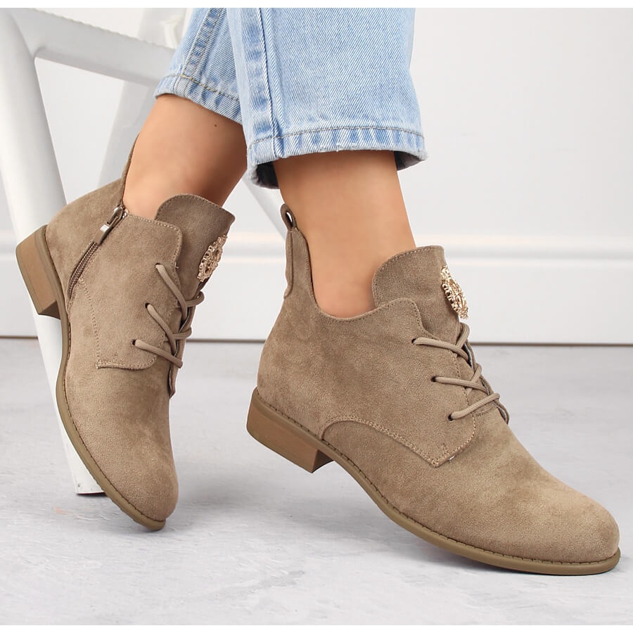 Detaljer: Beige mocka damstövlar med låg klack Jezzi ASA142-54