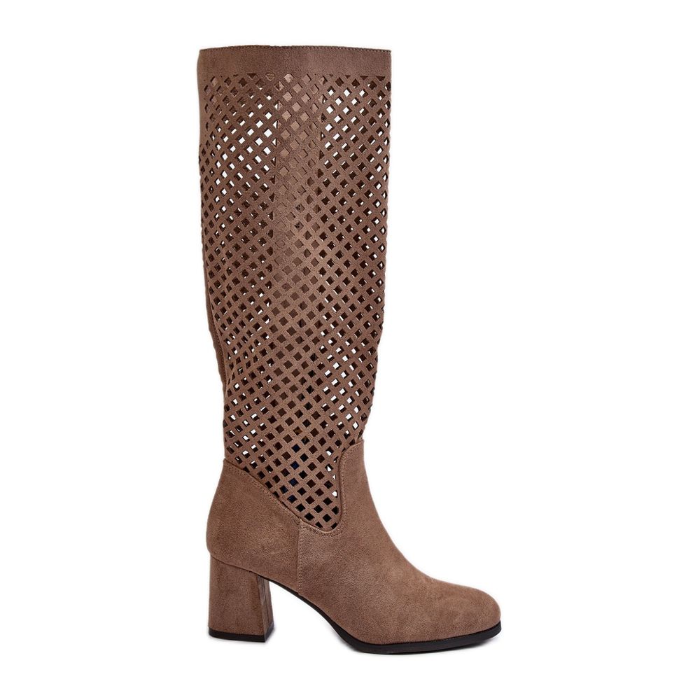 Inna marka Beige mocka genombrutna högklackade stövlar Jolenna