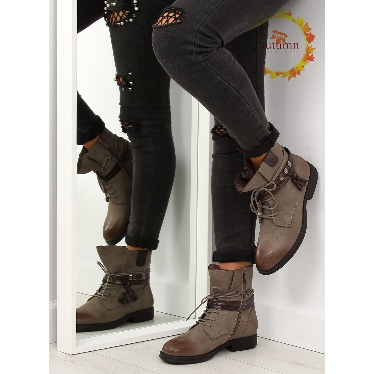 Detaljer: Beige och bruna kängor för kvinnor BH52-KB khaki