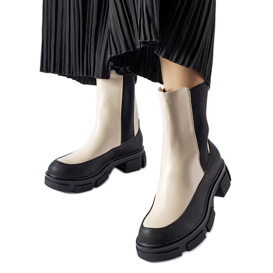 Stylish Faisal Boots kombinerar klassisk beige med en kontrasterande svart sula, vilket skapar en universell och sofistikerad modell som kommer att fungera både på kontoret och under kvällsutflykter. En rund näsa ger dem en feminin karaktär, och de insatta skärningarna garanterar snabbt och bekvämt att sätta på. Tack vare den 4 cm höga plattformen är skorna stabila och bekväma under dagen.