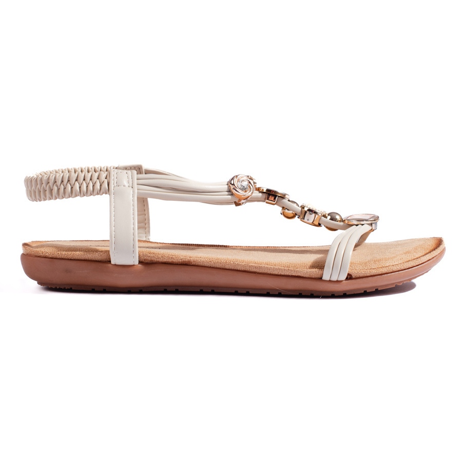 Fashionabla beige färg i kombination med eleganta tillbehör i form av zirkoner och strass gör dessa sandaler till ett perfekt komplement till både klassiska och mode stiliseringar. Deras insatta snitt gör att sätta på och ta av är snabbt och problem -fritt, och en platt häl med en höjd av 3 cm garanterar komfort även under långvarig slitage.