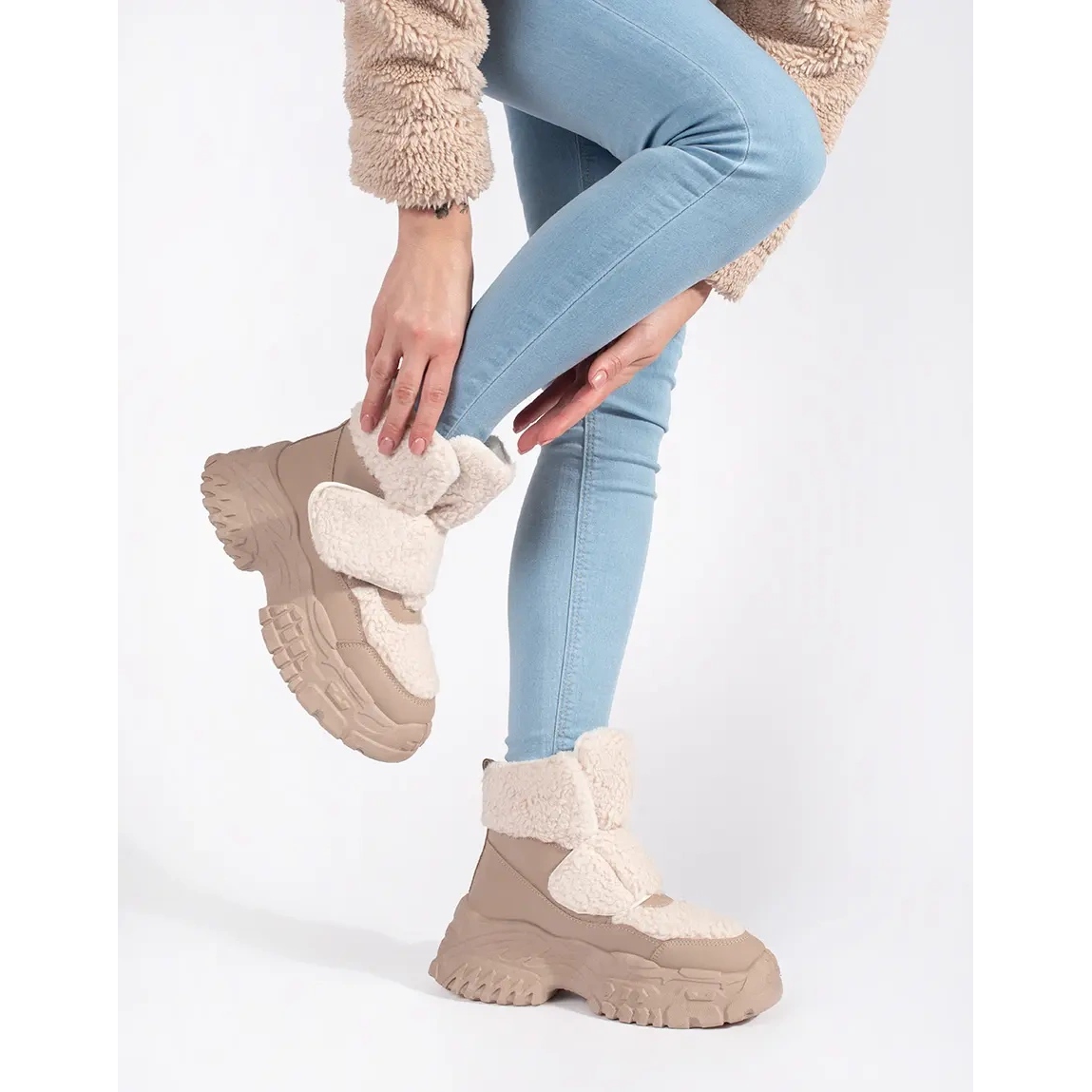 Detaljer: Seastar Beige plattformssnöboots med shearling päls