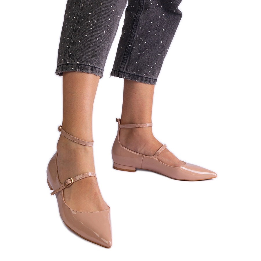 Upptäck beige platthelade pumpar som kombinerar elegans med daglig komfort. Denna universella modell är den perfekta lösningen för många tillfällen - både för formella utflykter och varje dag. Dessa skor är tillverkade av högkvalitativt ekologiskt läder och säkerställer komforten att bära hela dagen och en extra lackerad yta ger dem stil.