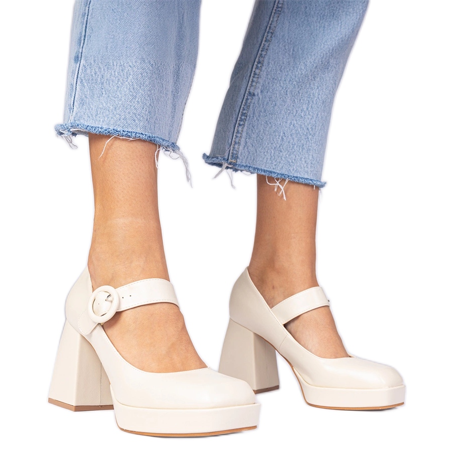 Detaljer: Beige pumpar med en fyrkantig tå och spänne