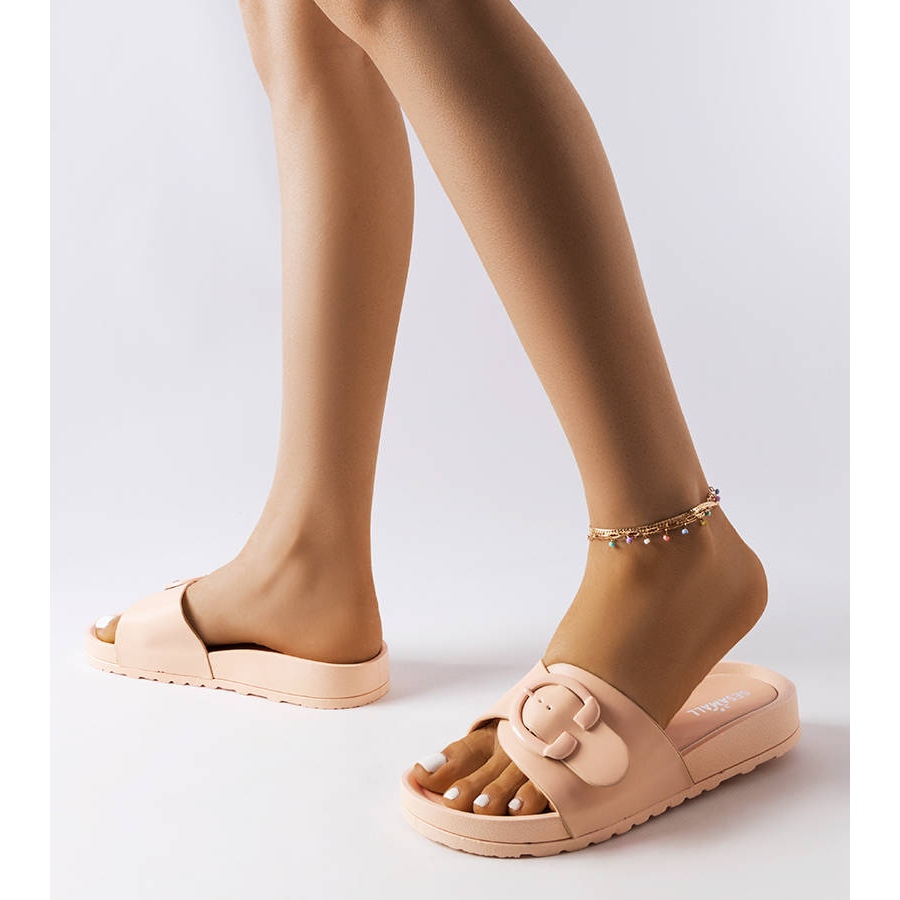 Beige rutschkanor med Généreux-spänne är ett perfekt val för sommardagar, som kombinerar komfort, stil och modern design. Dessa slip-on-skor är gjorda av högkvalitativt gummi och är inte bara lätta och bekväma, utan också extremt moderiktiga och håller sig uppdaterade. Låga klackar med en höjd på 3 cm ger optimal bärkomfort, vilket gör dem till en idealisk lösning för vardagsutflykter.