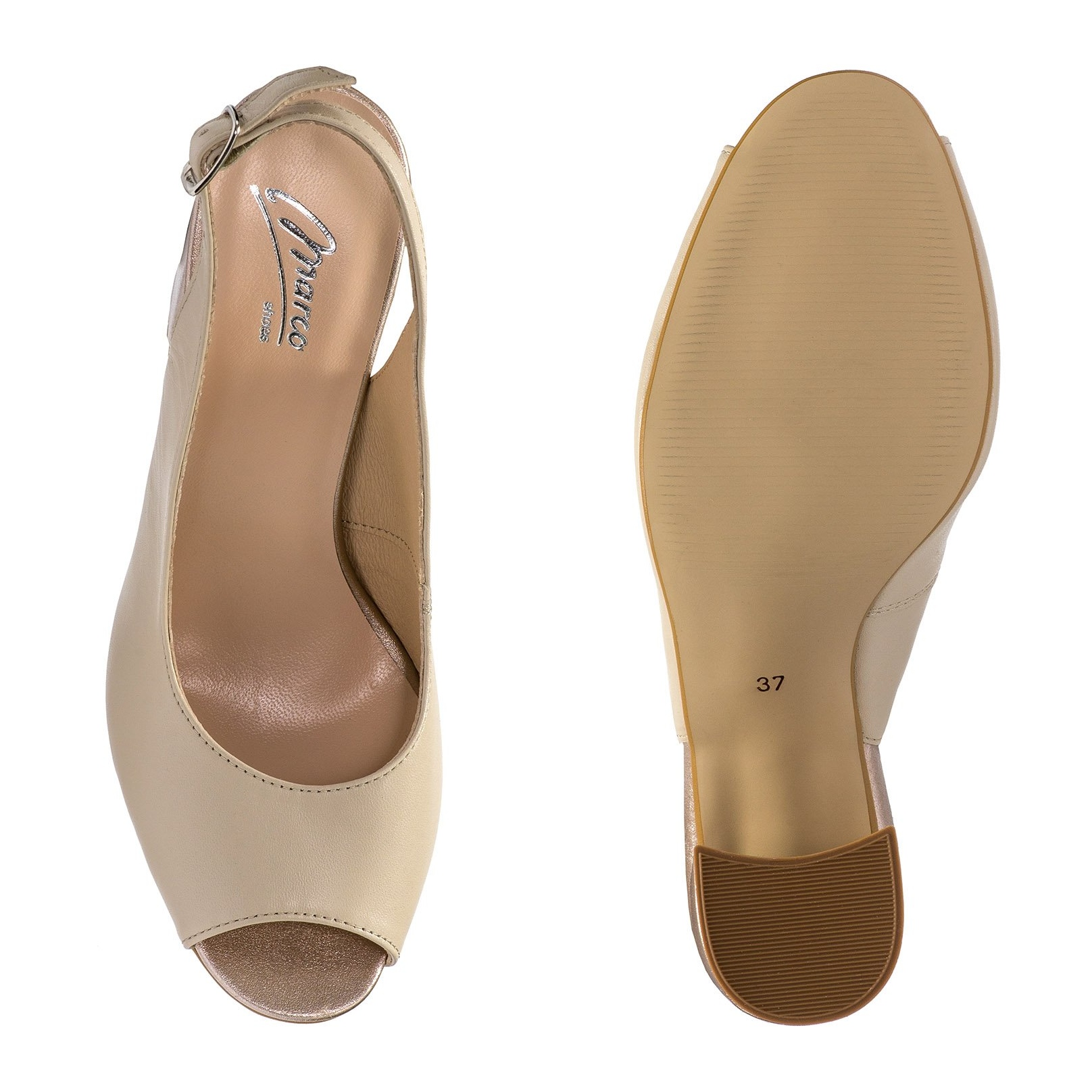 Det unika med Marco Shoes sandaler understryks av deras estetiska design gjord av naturligt narvläder. Ovandeln i läder och innersulan ger dina fötter inte bara oöverträffad komfort, utan också tillräcklig andningsförmåga, vilket är viktigt under varmare dagar. Den känsliga beige nyansen passar lätt in i vilken sommarstyling som helst, från avslappnad till mer formell.