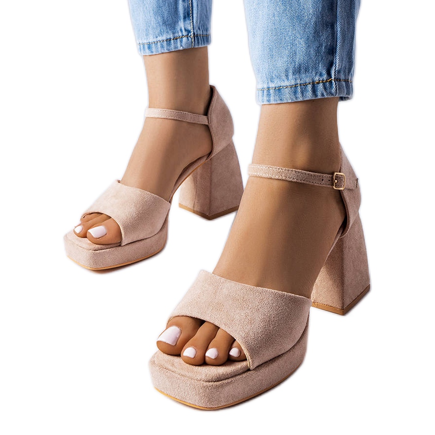 Detaljer: Beige sandaler med en trendig klack från Vinceza