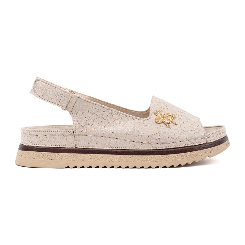 Sandaler är gjord av organisk yttre hud och ger ett modernt utseende samtidigt som de bibehåller miljön. Det naturliga läderinsatsen tar hand om fötternas komfort, tack vare vilken till och med långa bärtider inte kommer att vara ett problem. En stabil plattform med en höjd av 4 cm och en total klack med 5 cm gör sandalerna inte bara eleganta, utan också bekväma, optiskt förlängning av benen.