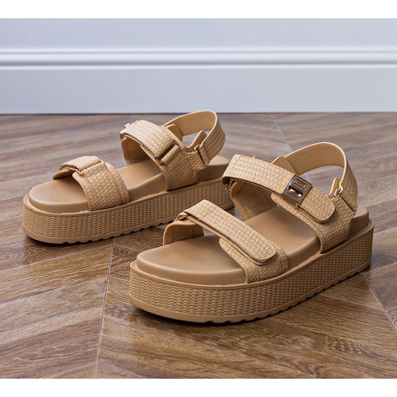 Beige sandaler på plattformen med kardborrband är ett bra val för kvinnor som värderar stil och komfort varje dag. YQ77-19-modellen kombinerar elegans och modernitet och blir det perfekta komplementet till sommarstyliseringar.