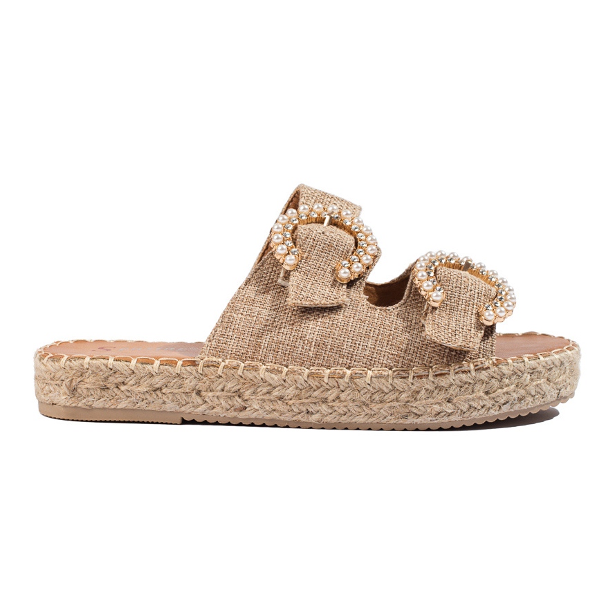 Detaljer: Beige Shelovet-tofflor med spänne för kvinnor