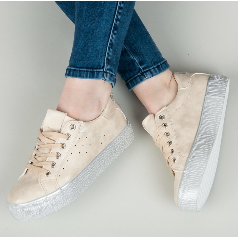 Tack vare den neutrala beige färgen kan dessa sneakers enkelt kombineras med en mängd olika kläder - från jeans, genom kjolar, till klänningar. Perfekt för dagligt bruk, dessa sneakers är ett måste i garderoben för varje fashionabel kvinna som värdesätter komfort och stil. Välj dessa unika sneakers och känn dig moderiktig utan att ge avkall på komforten!