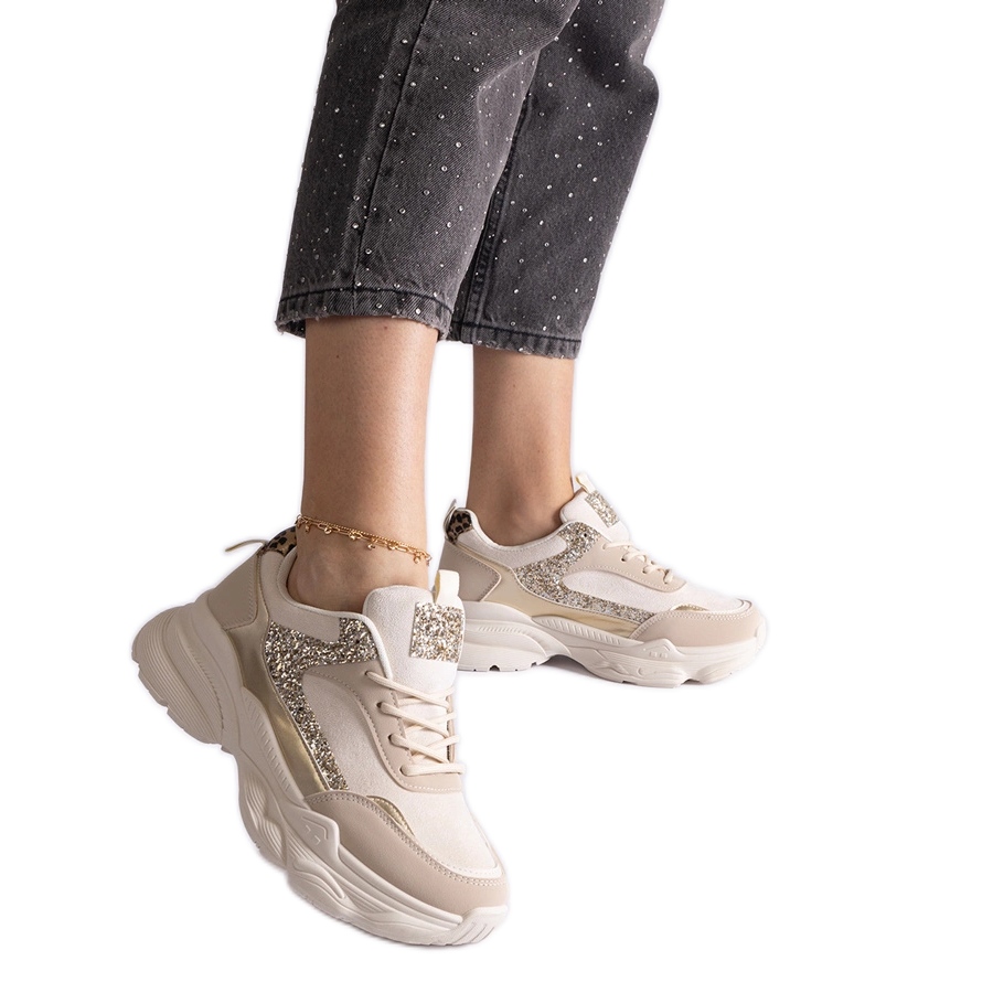 Detaljer: Beige sneakers med glitterinlägg