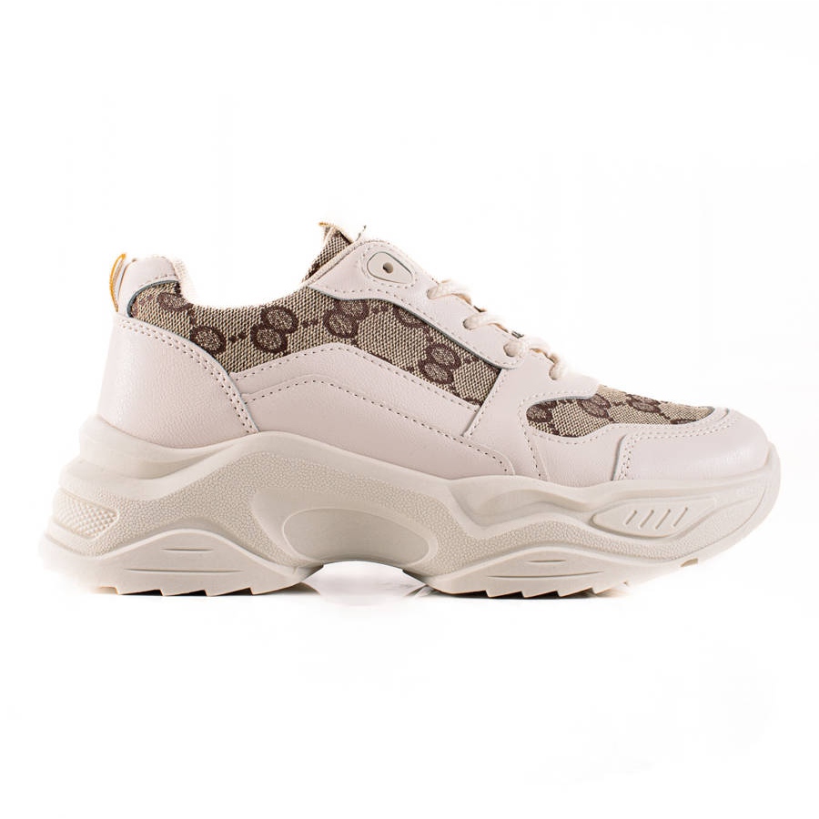 Med en 5,5 cm hög plattform förlänger dessa sneakers inte bara dina ben visuellt, utan ger också självförtroende till dina steg. Deras runda tå och snörning gör dem bekväma och praktiska att ta på. Den beige färgen med bruna accenter gör att sneakers passar bra till olika stilar, både för vår och sommar, och för höst och vinter.
