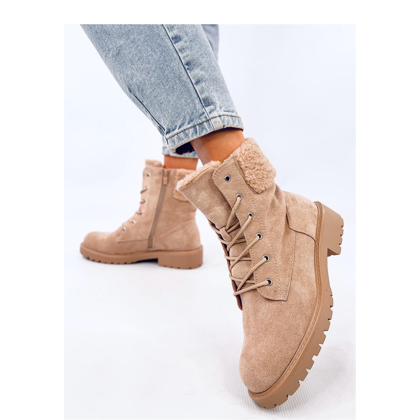 Här är klassiska kvinnors stövlar spetsar i beige färg, som inte bara glädjer sig med stil, utan också med komforten att bära. Charmiga detaljer, till exempel ett mjukt lamm som omger den övre, ger dem en unik karaktär som skiljer dem från andra modeller.