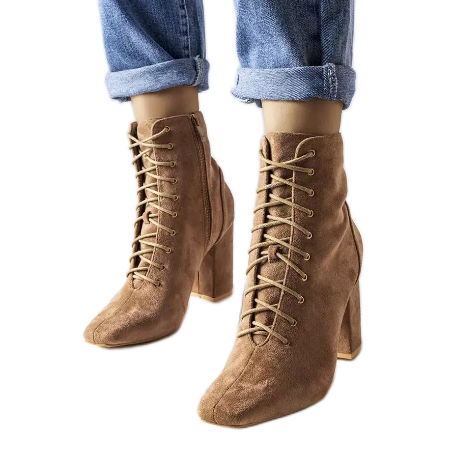 För komforten att bära finns det ett mjukt tyginlägg inuti stövlarna, vilket ökar användarkomforten. Modellen L08-237 damstövlar med snörning finns i en beige färg som heter "Khaki" av tillverkaren, som passar perfekt in i höst- och vinterns färgpalett.