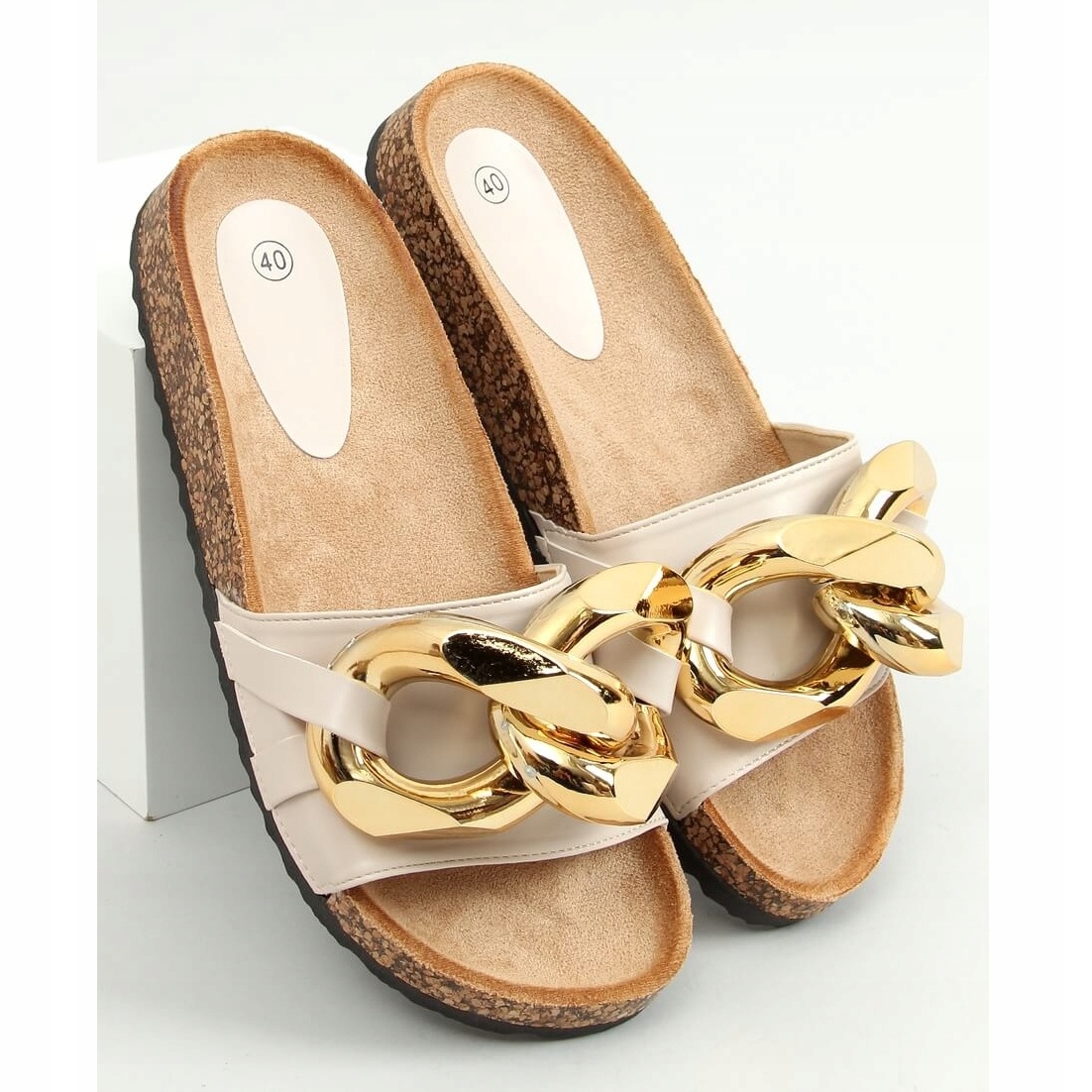 Detaljer: Beige Tofflor med en tjock kedja CK201 Beige