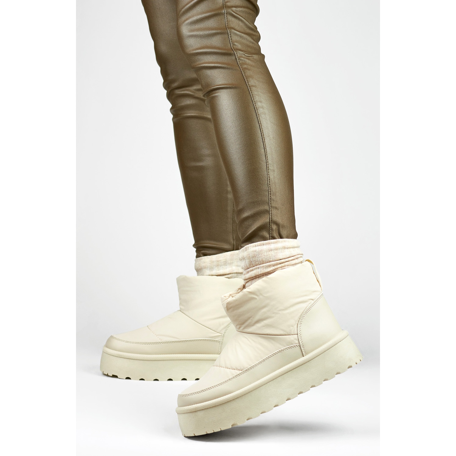 Beställ idag och njut av värmen och bekvämligheten i snygga beige snöstövlar på plattformen.