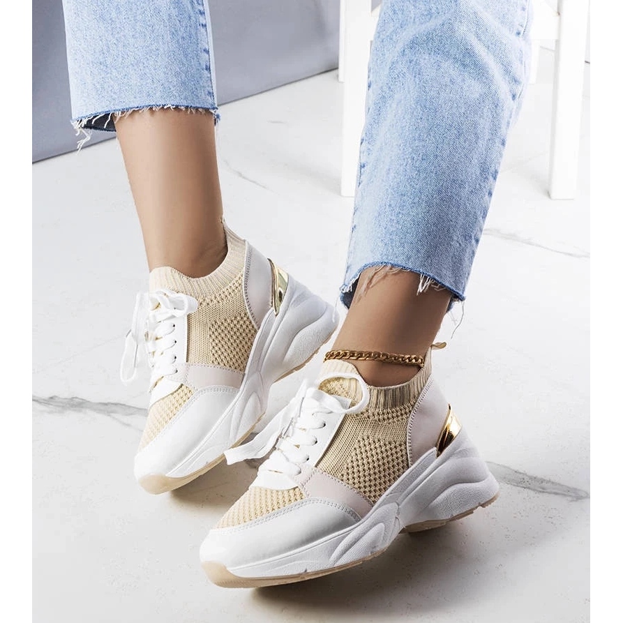 Upptäck en unik stil med beige sneakers på en anklad kil från varumärket D/GMR! Dessa modeskor är en perfekt kombination av komfort och elegans, som perfekt passar in i de senaste trenderna. Sneakers är tillverkade av högkvalitativa material och ger en perfekt passform för foten, vilket gör dem till det perfekta valet dagligen.