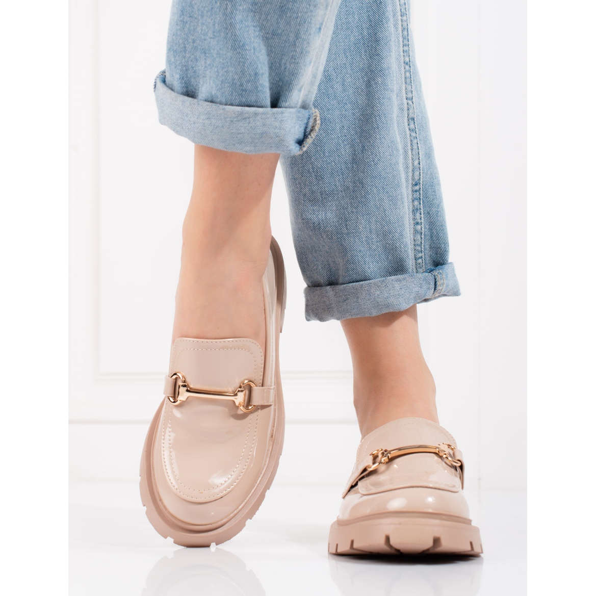 Beige lackskor från Shelovet är det perfekta valet för kvinnor som värdesätter elegans och vardagskomfort. Dessa klassiska loafers kommer att fungera bra i både avslappnade och mer formella stilar, vilket gör dem till ett oersättligt inslag i varje vår- och sommargarderob.