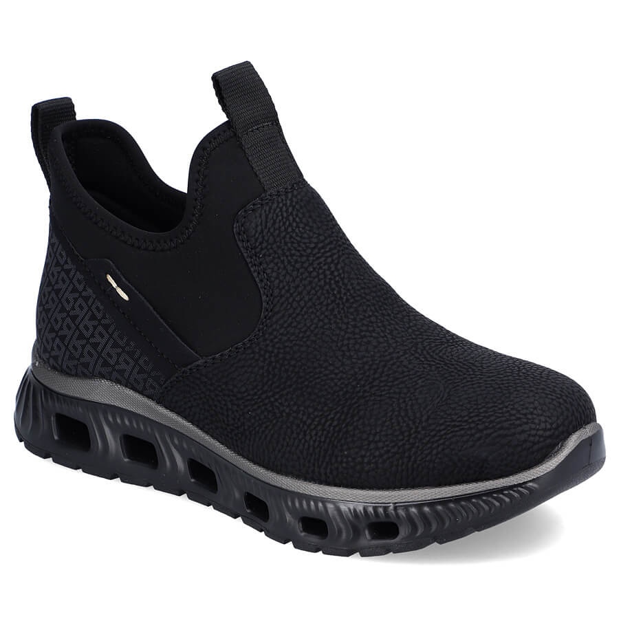 Detaljer: Bekväma ankelhöga slip-on skor för kvinnor, svarta Rieker M6053-00
